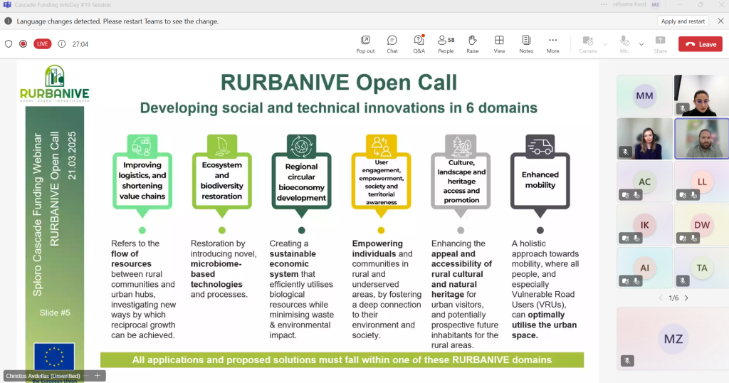 Collaboration has been a defining feature of RURBANIVE’s communication strategy. RFF hosted a joint webinar on the Sploro platform together with PoliRuralPlus and SPADE ERU, showcasing the RURBANIVE Open Call and promoting cross-project synergies.